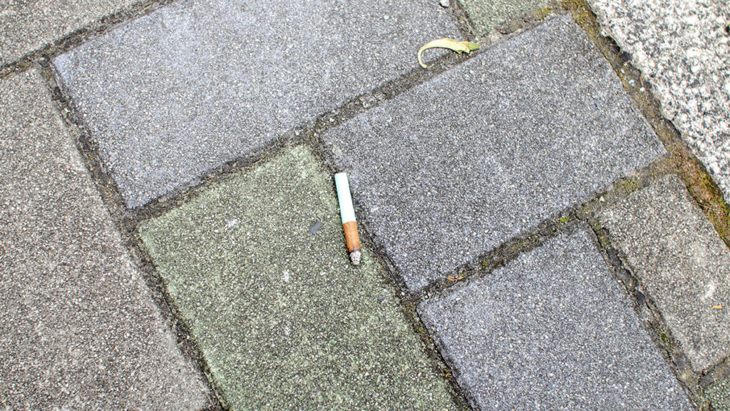 タバコの吸い殻を道に捨てないためのアイデアを考えてみてもよいかもしれない。
